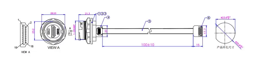 HDMIメスバックマウントストレートHDMI男性FFCタイプ(スレッド)