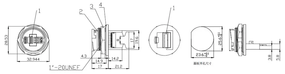 RJ45女性ボードリアシングルイーサネットポートテールプレートソケット付きターミナル(スレッド)