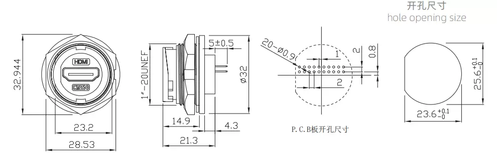 | HDMI女性から女性バックマウントPCBレセプタクル(銃剣) | HDMI 2K | E16B-FH2-PPF |