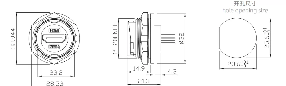 | HDMI女性から女性のバックマウントレセプタクル(銃剣) | HDMI 4K | E16B-FH4-PRF |