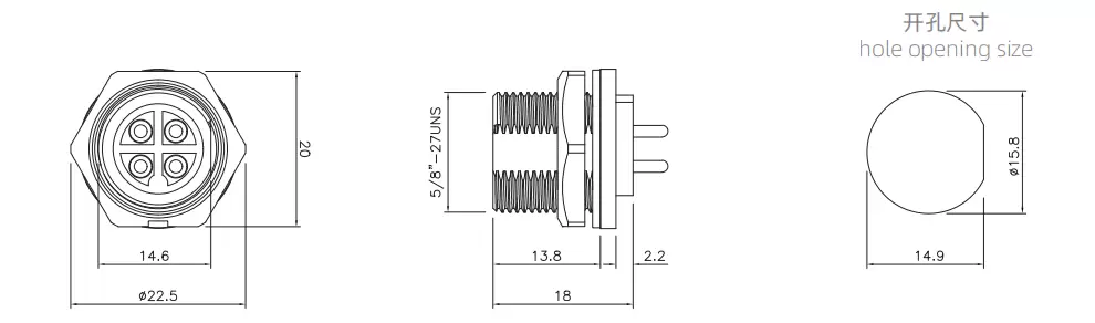 | E10メスバックマウントPCBレセプタクル(スレッド) | 300V | 10a | E10T-S4B-PPF | 4b | ||