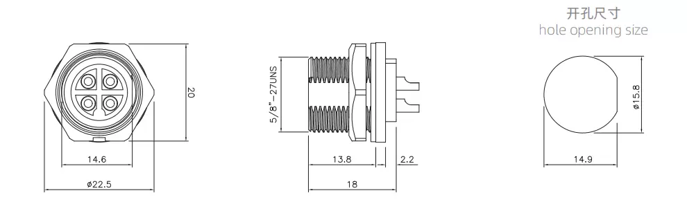 | E10メスバックマウントはんだレセプタクル(ねじれ) | 60V | 5a | E10T-S4-PWF | 4 | ||