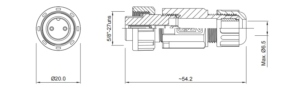 | E10 ストレート メス 現場取り付け可能プラグ (ネジ付き) | 60V | 5A | 2 | E10T-S2-PWA06 | ↓ | ↓ |