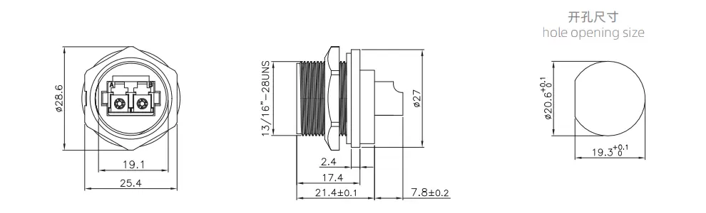 | FDDIシングルモードダブルコアバックマウントレセプタクル(スレッド) | シングルモードのダブルコア | E13T-FF2-PRF |