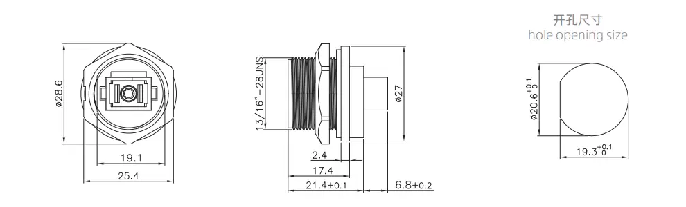 E16 FDDIシングルモードダブルコアバックマウントレセプタクル(銃剣)