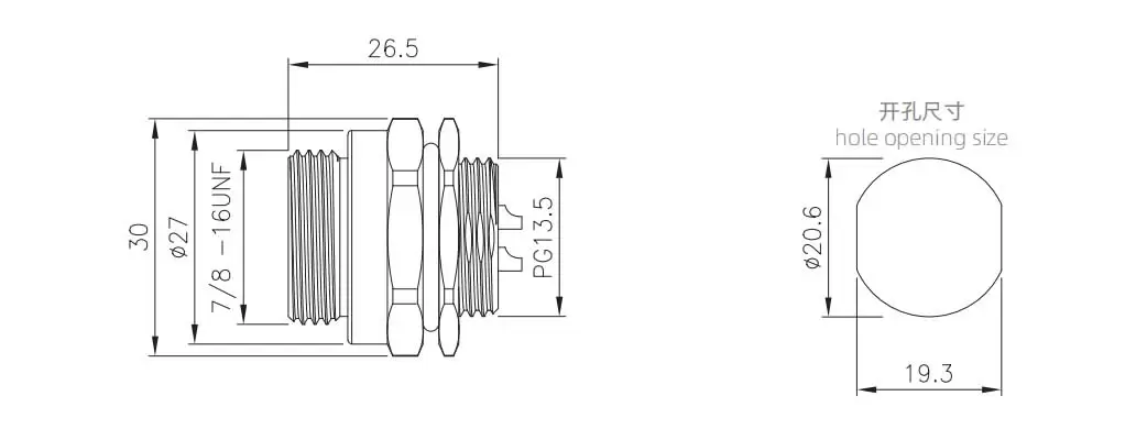 | 7/8男性フロントマウントソケット(はんだ、ねじPG13.5) | 7/8-P6- GWBP13 | 6 |