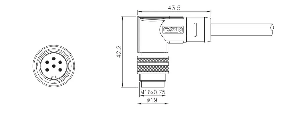 | M16 アングル型オス オーバーモールド プラグ-7APins-xxM-PVC | M16-P7A-MWD-xxPV-S | M16-P7A-MWD-xxPV | 7A |