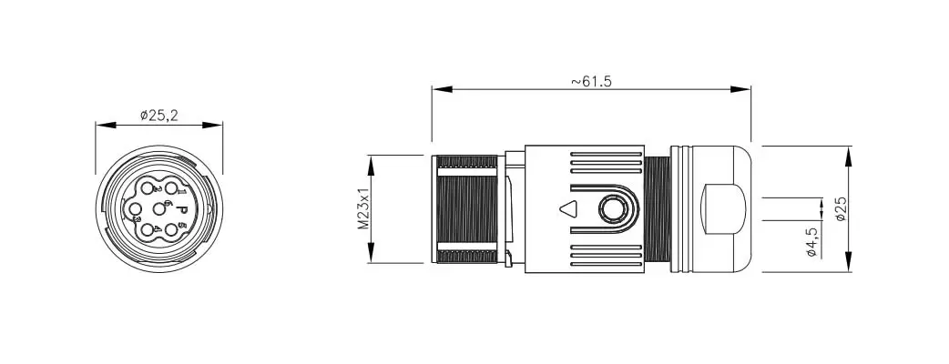 | M623信号ストレート交配メスメタルアセンブルプラグ(クリンプ) | M623-S6P-GCKP11 | M623-S6E-GCKP11 | 6ピン | ||