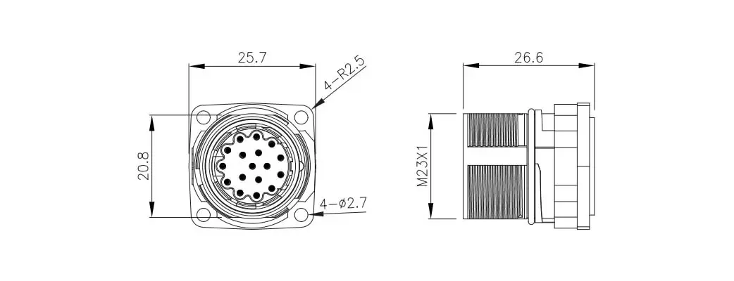 | M623信号ストレートオスソケット(クリンプ、マウントホール19.8x19.8) | M623-P17P- GCH | M623-P17E- GCH | 17ピン |