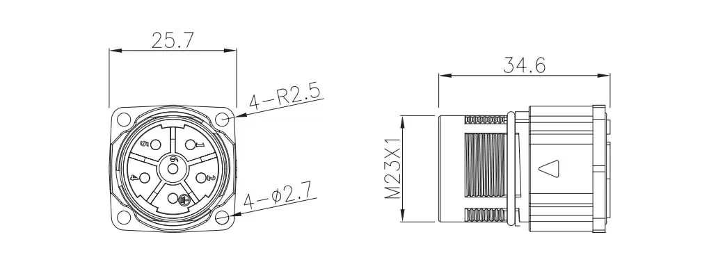 | M923パワーオスストレートスクエアフランジソケット(クリンプ) | M923-P6-GCH | 6ピン | ||
