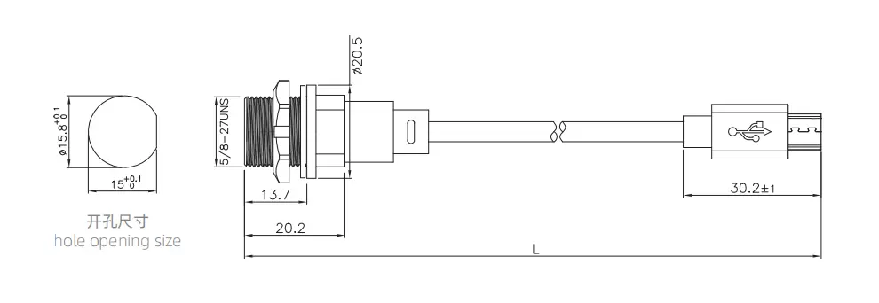 オスのオーバーダウンしたケーブル(銃剣)へのマイクロメスバックマウントレセプタクル
