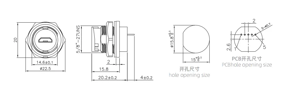 | マイクロUSBメスバックマウントPCBレセプタクル(銃剣) | E10B-FUM-PPF |