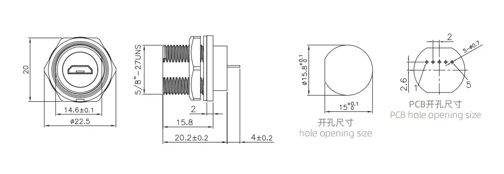 | マイクロUSB女性バックマウントPCBレセプタクル(ねじれ) | E10T-FUM-PPF |