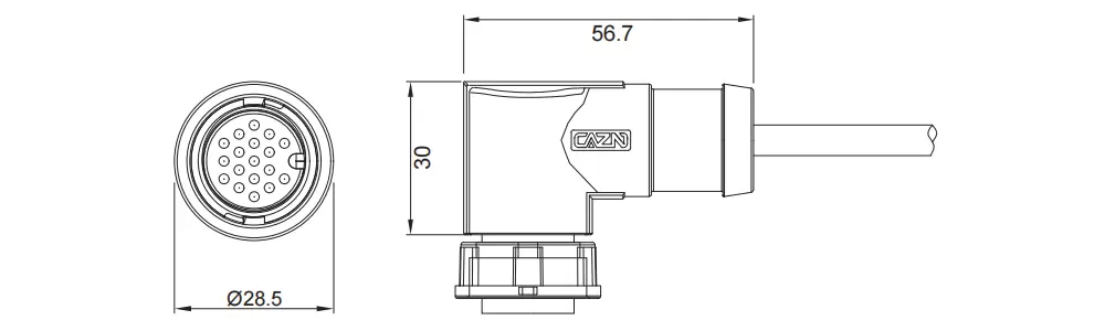 | E16角度の雌のオーバーモールドプラグ(銃剣) | 50V | 2a | E16B-S21- MWD-XPV | 21 | ||