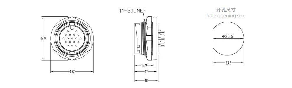 | E16男性バックマウントはんだレセプタクル(銃剣) | 50V | 5a | E16B-P18-PWF | 18 | ||