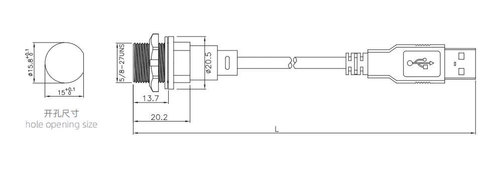 | タイプCメスバックマウントレセプタクルからUSB男性オーバーモールドケーブル(スレッド) | タイプ-C3.0 | 0.5m | E10T-FT3-PWF/MU3-NWA-0.5PV-S | ||
