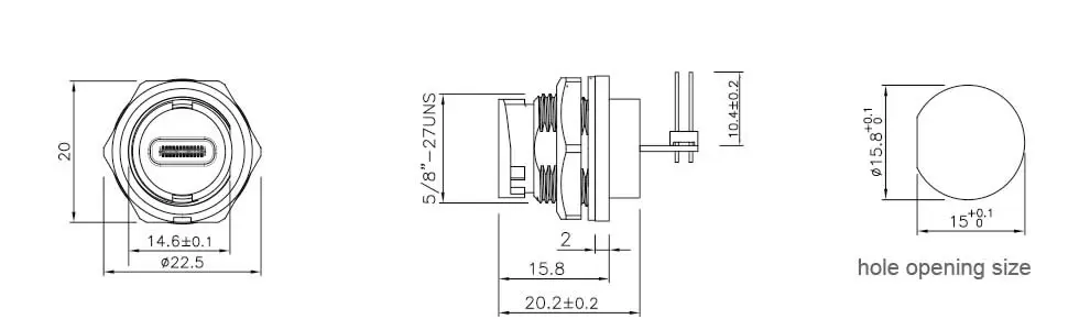 タイプCメスからメスバックマウントレセプタクル(銃剣)