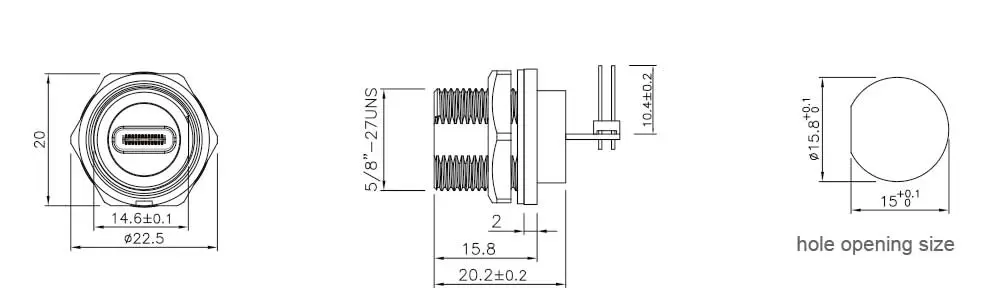 Type-CメスバックマウントPCBレセプタクル(スレッド)