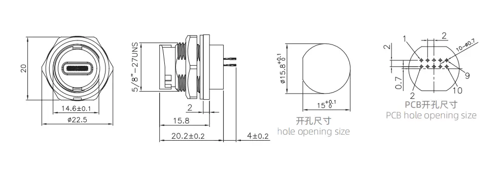 タイプCメスバックマウントPCBレセプタクル(銃剣) | タイプ-C3.0 | E10B-FT3-PPF |