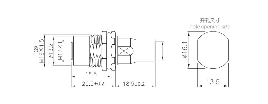 | M12 メス バックマウントソケット はんだシールド | M12-S5D-GWFM16-PBG | 5d | ||
