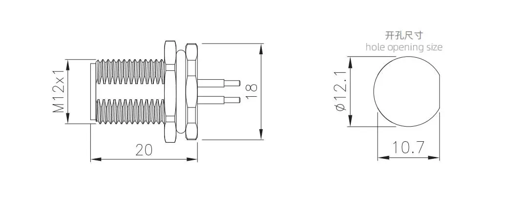 | M12男性バックマウントソケット(PCB ) | M12-P12A-PPFM12 | 12a | ||