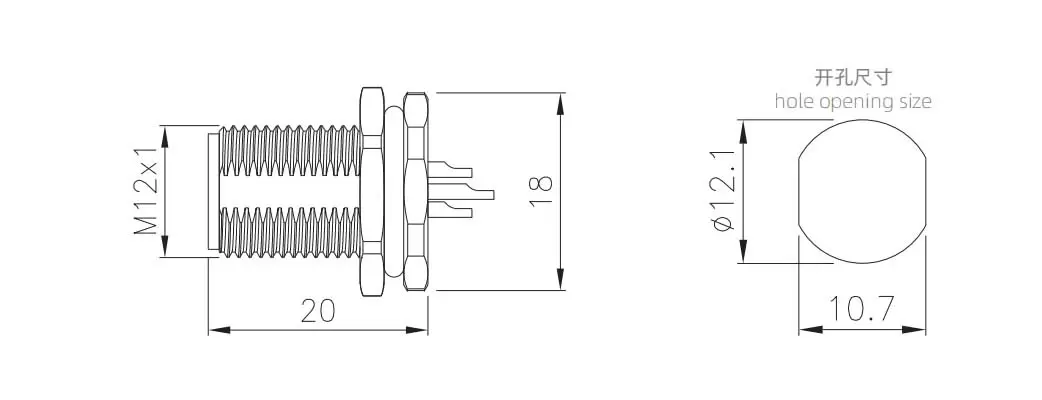 M12男性バックマウントソケット(PCB、ネジM15*1、プラスチックタイプ)