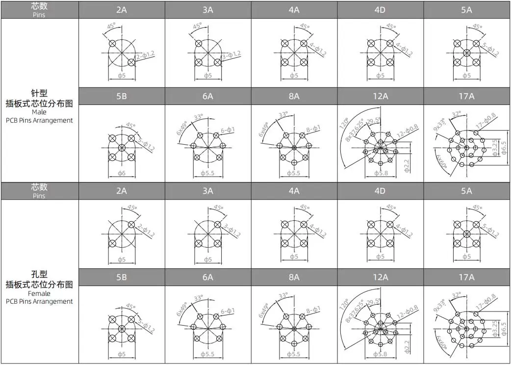 | M12女性フロントマウントソケット(PCB) | M12-S6C-GPBM16X1.5 | 6c |