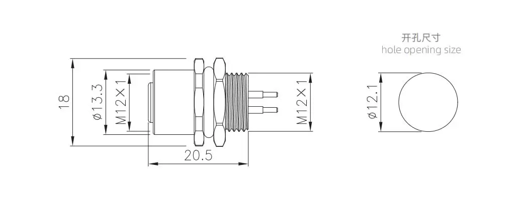M12男性フロントマウントソケット(PCBネジM12*1)