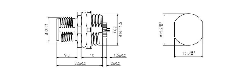 | M12亜鉛合金シェルオスフロントマウントソケット(はんだ) | M12-P5D-GWBM16-ZA | M12-P5D- GWBP9-ZA | 5d | ||