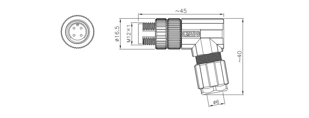 | M12角度のある雄の金属組み立てプラグ | M12-P6A-GWDP9 | 6a | ||