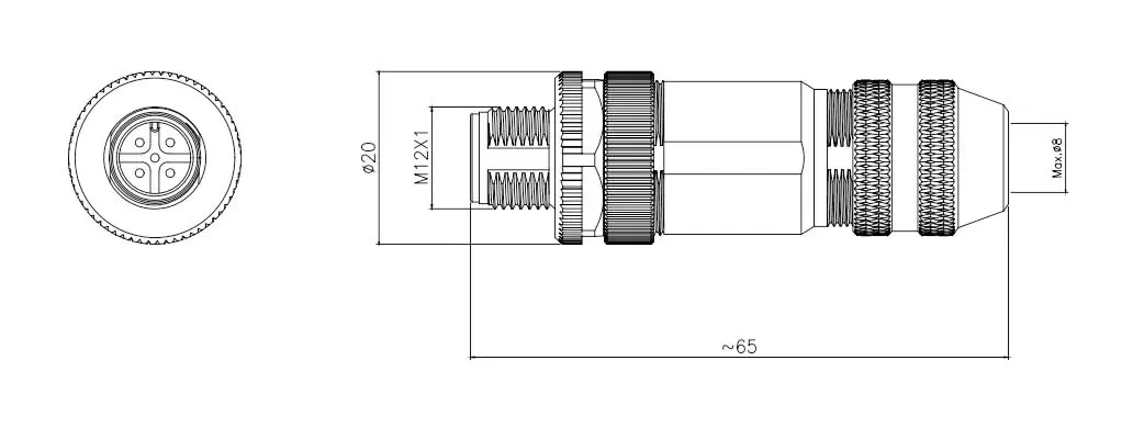 | M12ストレートオスメタルアセンブルプラグ(ネジ) | M12-P8A-GLAP7 | M12-P8A-GLAP9 | 8a |