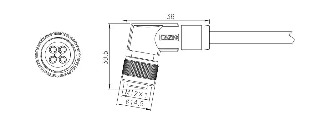 | M12角度の雌のオーバーモールドプラグ(パワータイプ) | M12-S5K-MWD-XPV/XPU | (4+PE)k | ||