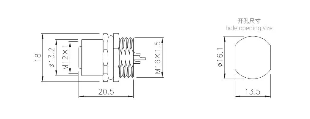 | M12女性フロントマウントソケット(電源タイプ、はんだ、ネジM16*1.5)フィオン | M12-S3L-GWBM16-NP | M12-S3L-GWB PG9 -NP | 3L | ||