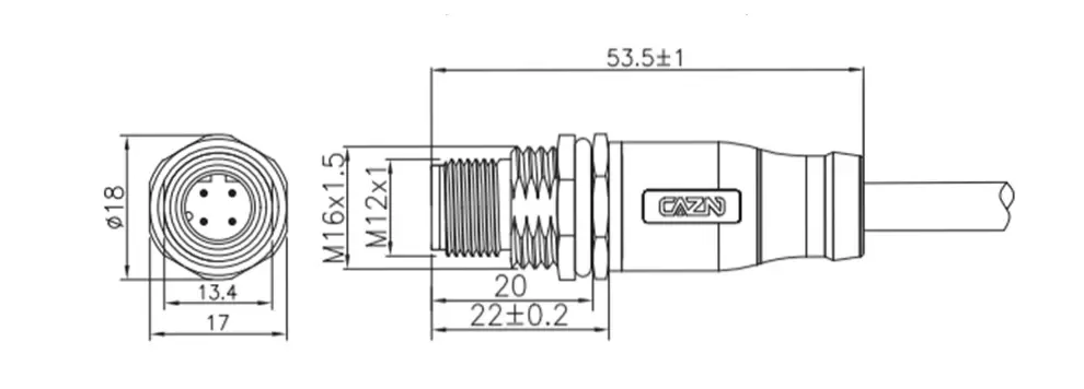 | シールドチューブワイヤーハーネスを備えたM12成形雄ソケット | M12-P17A- MWFM16-XPV/XPU-S | 17a |