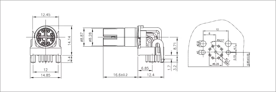 | M12直角女性ソケット(PCB) | M12-S8X-GPLM12-BJD | 8x | ||