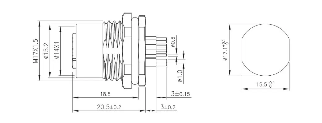 | M14メスバックマウントソケット | M14-S18-GPFM17 | 18ピン |