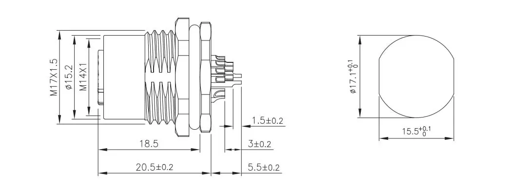 | M14メスバックマウントソケット | M14-S18-GWFM17 | 18ピン |