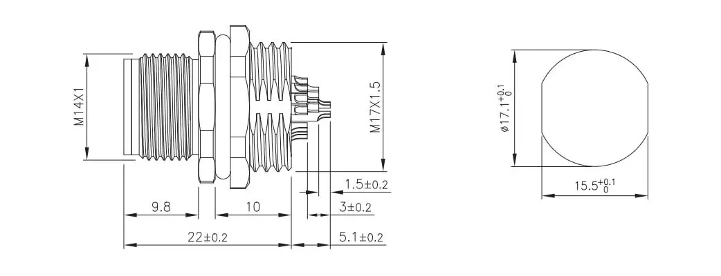 | M14男性フロントマウントソケット(はんだ)ネジM17x1.5 | M14-P18-GWBM17 | 18ピン |