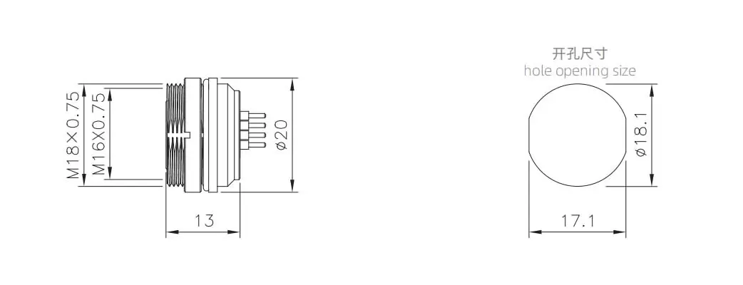 | M16メスバックマウントソケット(PCB) | M16-S2-GPFM18 | 2ピン | ||