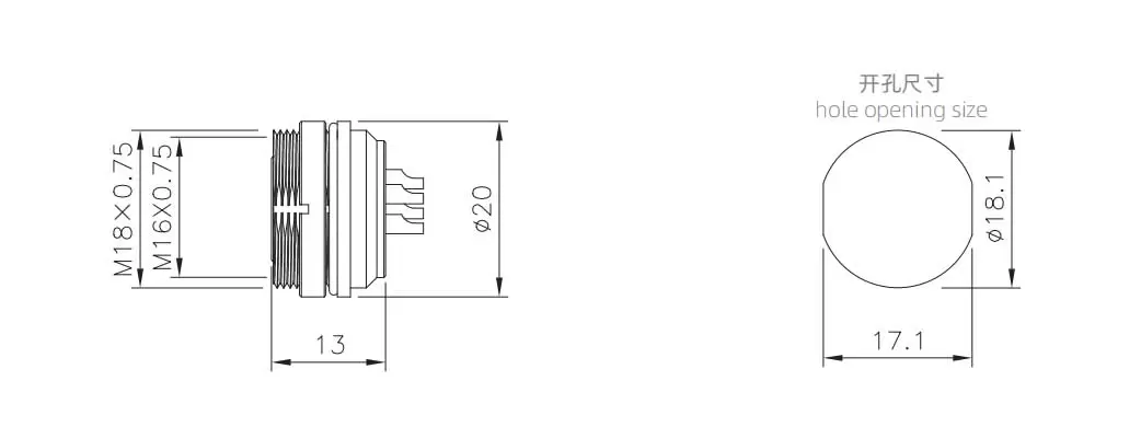 M16男性バックマウントソケット(PCB、ネジM18*0.75)