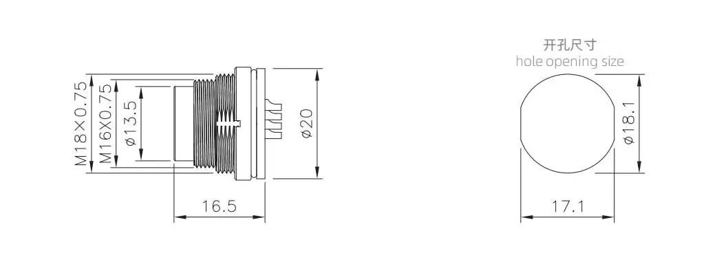 | M16男性バックマウントソケット(はんだ) | M16-P3- GWFM18 | 3ピン | ||