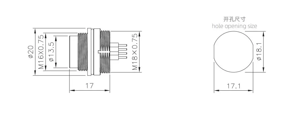 | M16男性フロントマウントソケット(PCB) | M16-P4-GPBM18 | 4ピン | ||