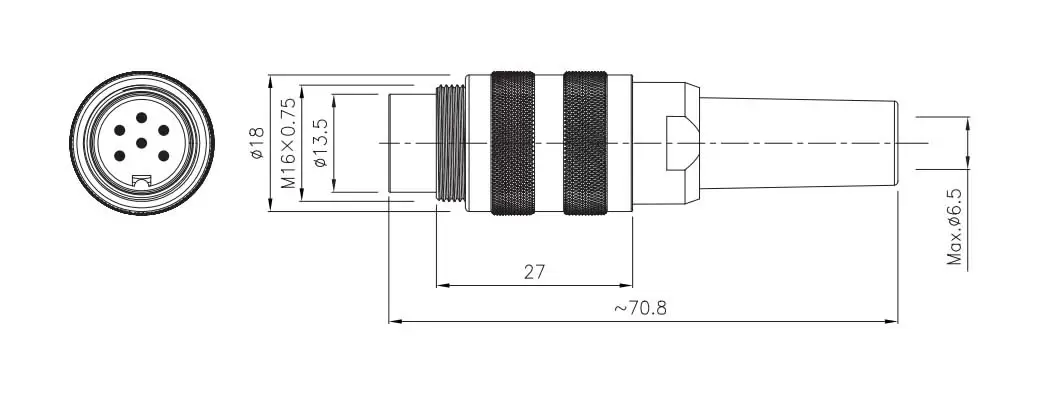 | M16ストレートオスの組み立てプラグ(はんだ、プラスチックチューブ) | M16-P6-PWA05-PT | 6ピン | ||