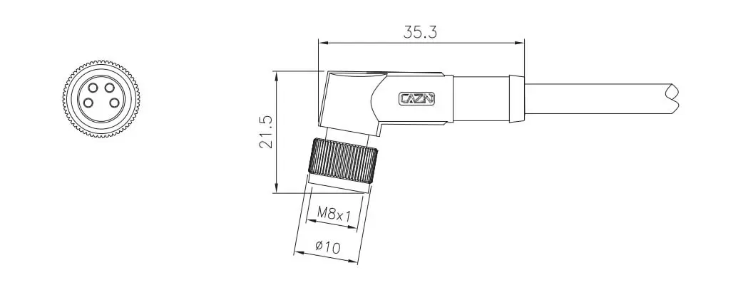 | M8角度の雌のオーバーモールドプラグ | M8-S3A-MWD-XPV/XPU | 3ピンAコード | ||