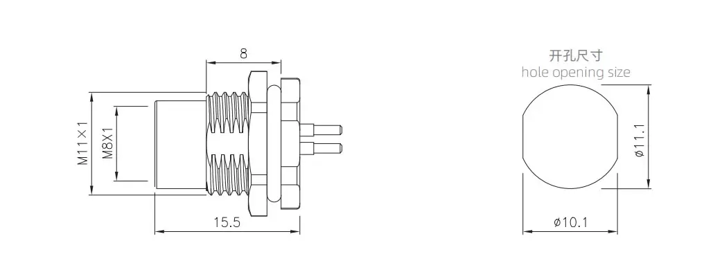 | M8メスバックマウントソケット(PCB、ネジM11*1) | M8-S4A-GPFM11 | 4 ピンAコード | ||