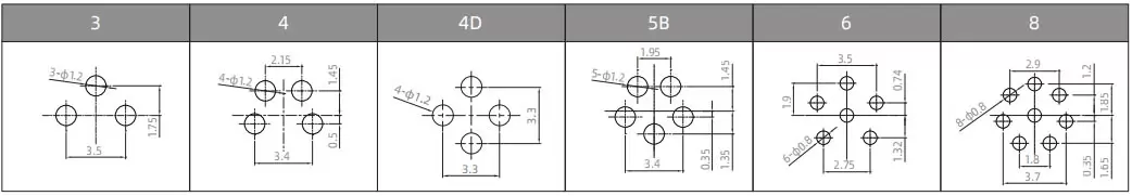 | M8メスバックマウントソケット(PCB、ネジM11*1) | M8-S6A-GPFM11 | 6 ピンAコード | ||