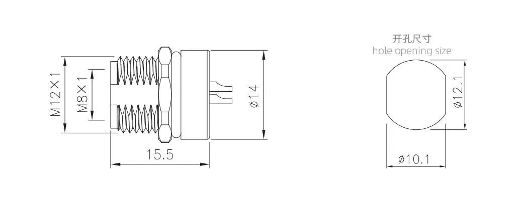 | M8メスバックマウントソケット(はんだ、ネジM12*1) | M8-S5B-GWFM12 | 5ピンBコード | ||