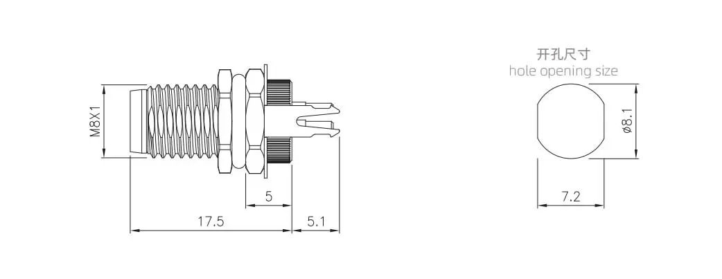 | M8男性バックマウントソケット(PCB、ネジM8*1、接地タイプ) | M8-P8A-GPFM8-JD | 8ピンAコード |