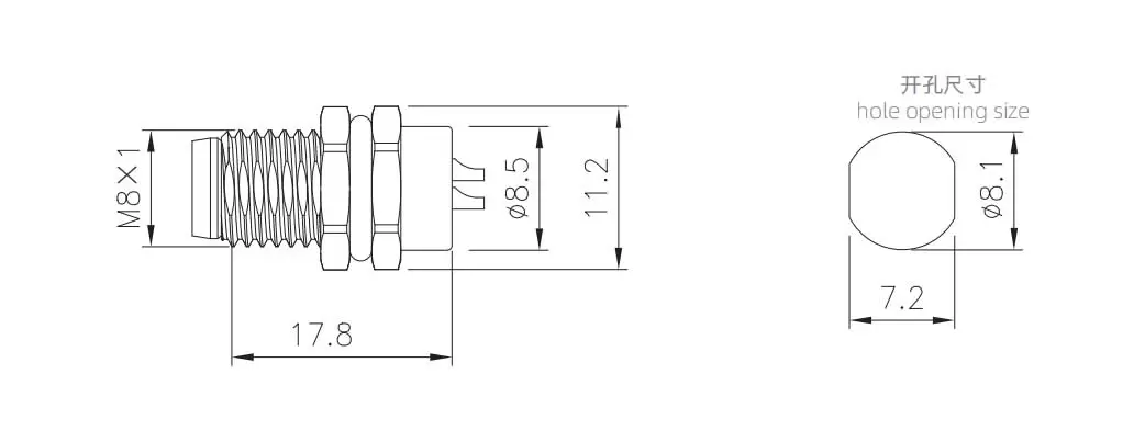 | M8男性バックマウントソケット(メタルインターフェイス) | M8-P3A-GWFM8-GK | 3ピンAコード | ||