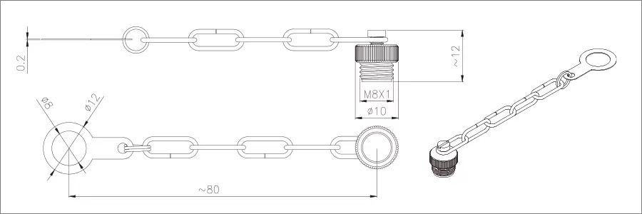 | M8メタルダストカバー(外側のねじ、 ネジ: M12x1) | M8G-TV1S-12-N | φ12mm |